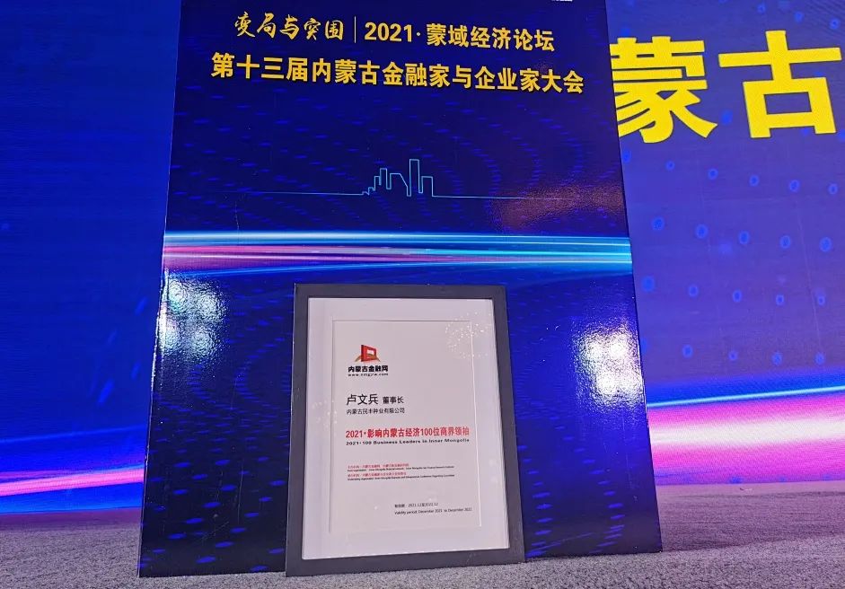 本次大會評選了一批新經濟時代各個行業(yè)的優(yōu)秀企業(yè)家,旨在弘揚企業(yè)家精神、樹立內蒙古經濟榜樣人物。榜單是以企業(yè)“管理團隊、品牌價值、商業(yè)模式、永續(xù)發(fā)展“為維度進行評估。作為內蒙古金融領域佼佼者、農業(yè)領域創(chuàng)新者,盧文兵先生從影響力、貢獻力、發(fā)展力、經營力、創(chuàng)新力等多方面都體現了商界人物的人格魅力。他憑借誠信、創(chuàng)新、堅持、進取的匠人精神,被評選為2021影響內蒙古經濟100位商界人物榮譽稱號。
